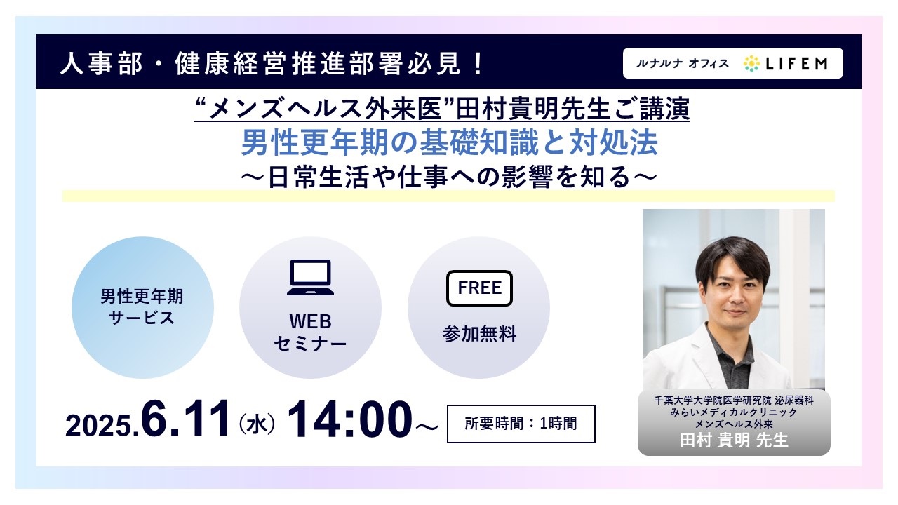 2025年6月11日の14:00より、『“メンズヘルス外来医”田村貴明先生ご講演
