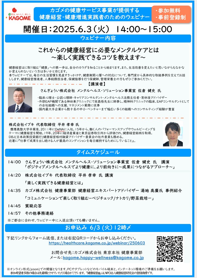 健康経営推進者、人事総務担当者、保健指導を行う保健師、管理栄養士の方もぜひご参加ください。