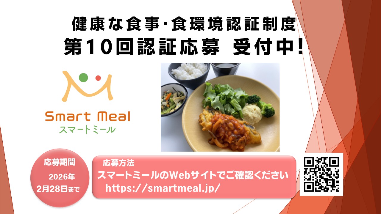 健康な食事「スマートミール」を提供する事業者を認証する第10回認証の応募をただいま受け付けています。