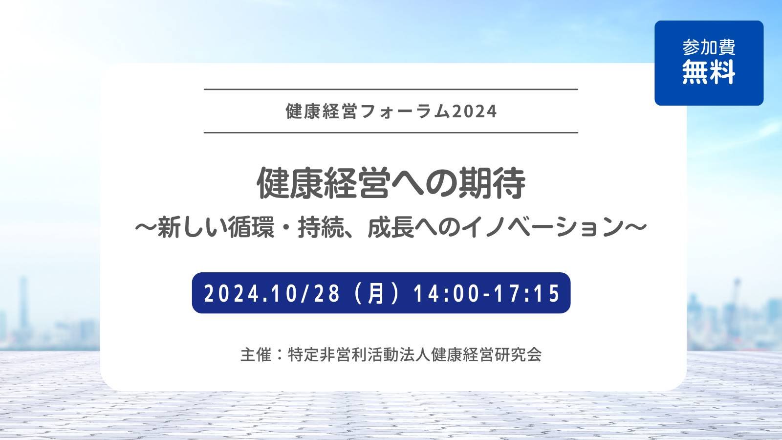 本フォーラムでは、企業、自治体、サービス提供者等様々な立場から「これからの健康経営への期待」について情報を発信し